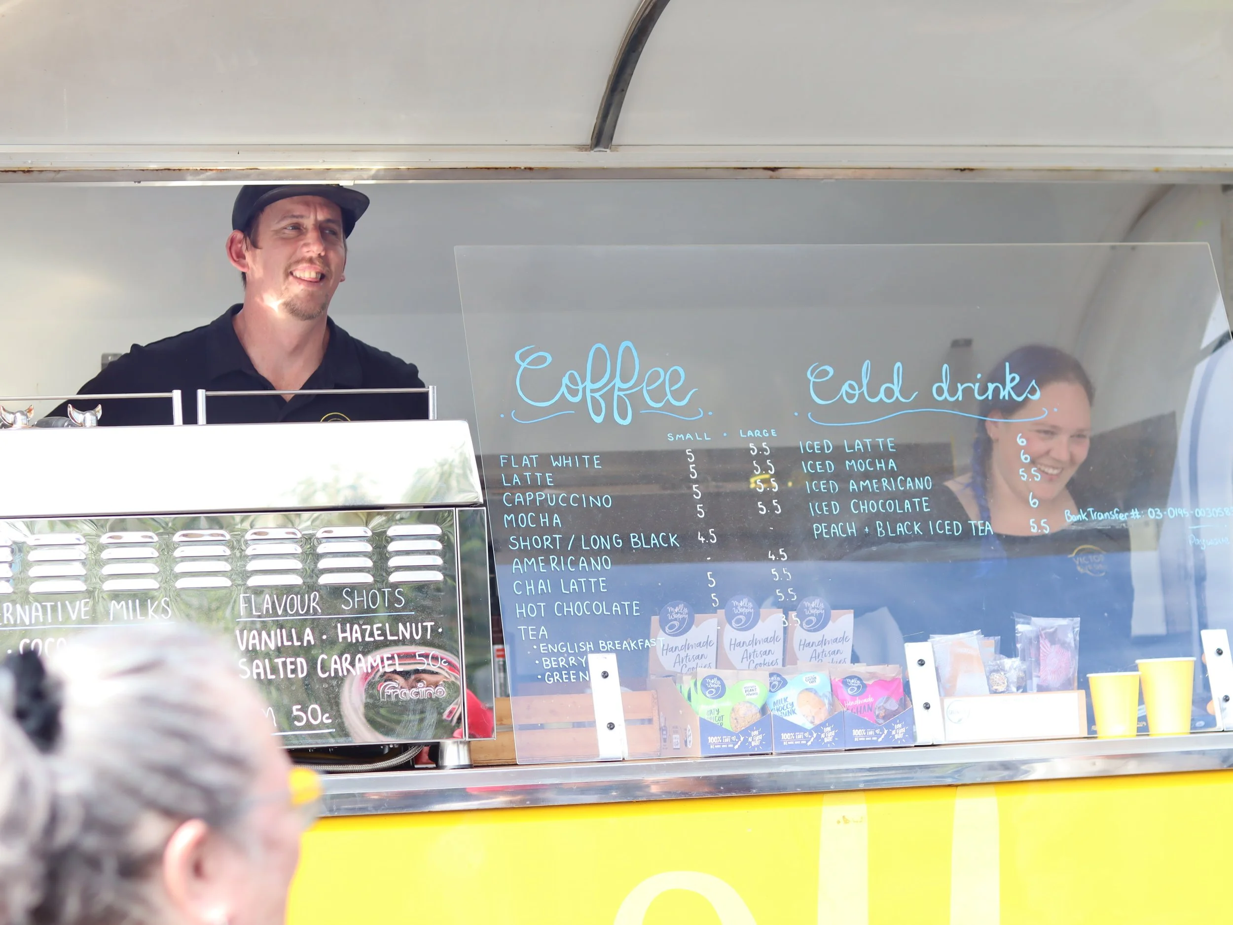 Hello! We’re Jess and Brad, husband and wife, young(ish) coffee enthusiasts! Here in Aotearoa, we’ve got it pretty good. Blue skies, smiling faces and real community goodness. For events big and small, we bring the coffee, in bright yellow fashion. We have 2 stationed locations in West Auckland where you can drive/walk up and get a coffee, or, our coffee carts can come to you for your next event!